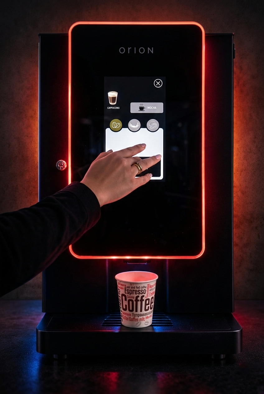 A premium coffee vending machine engineered for consistent, barista quality coffee without complexity. A responsive touchscreen interface allows easy drink customization while the integrated grinder ensures freshness in every cup. Fully automated and ready to deploy, just connect, stock, and serve.